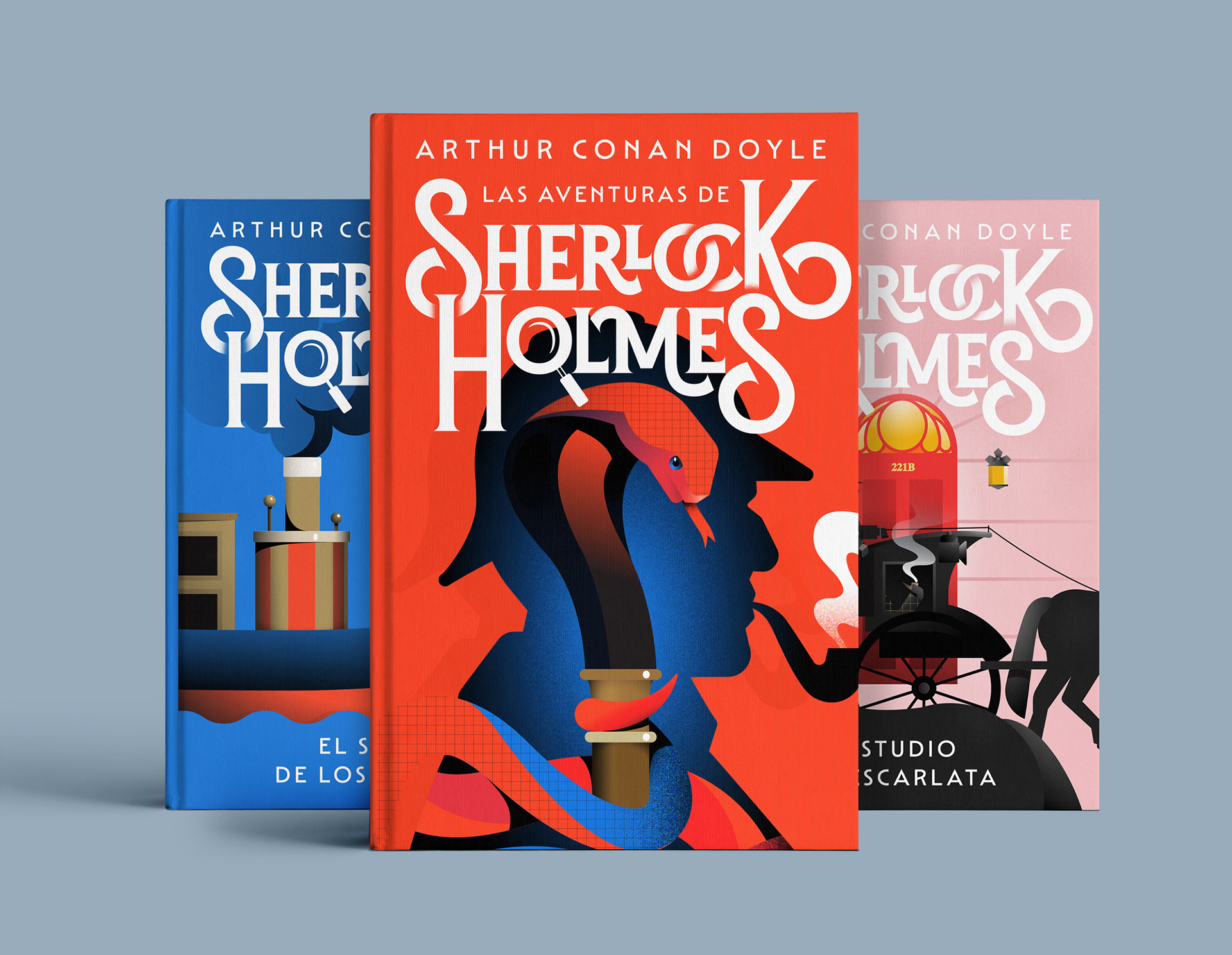 three books of the spanish 'Sherlock Holmes' series of booket editorial.